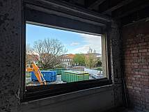 Ein besonderes Detail: Die historischen Holzfenster werden weiterverwendet und bleiben so als sichtbares Element der Vergangenheit erhalten.